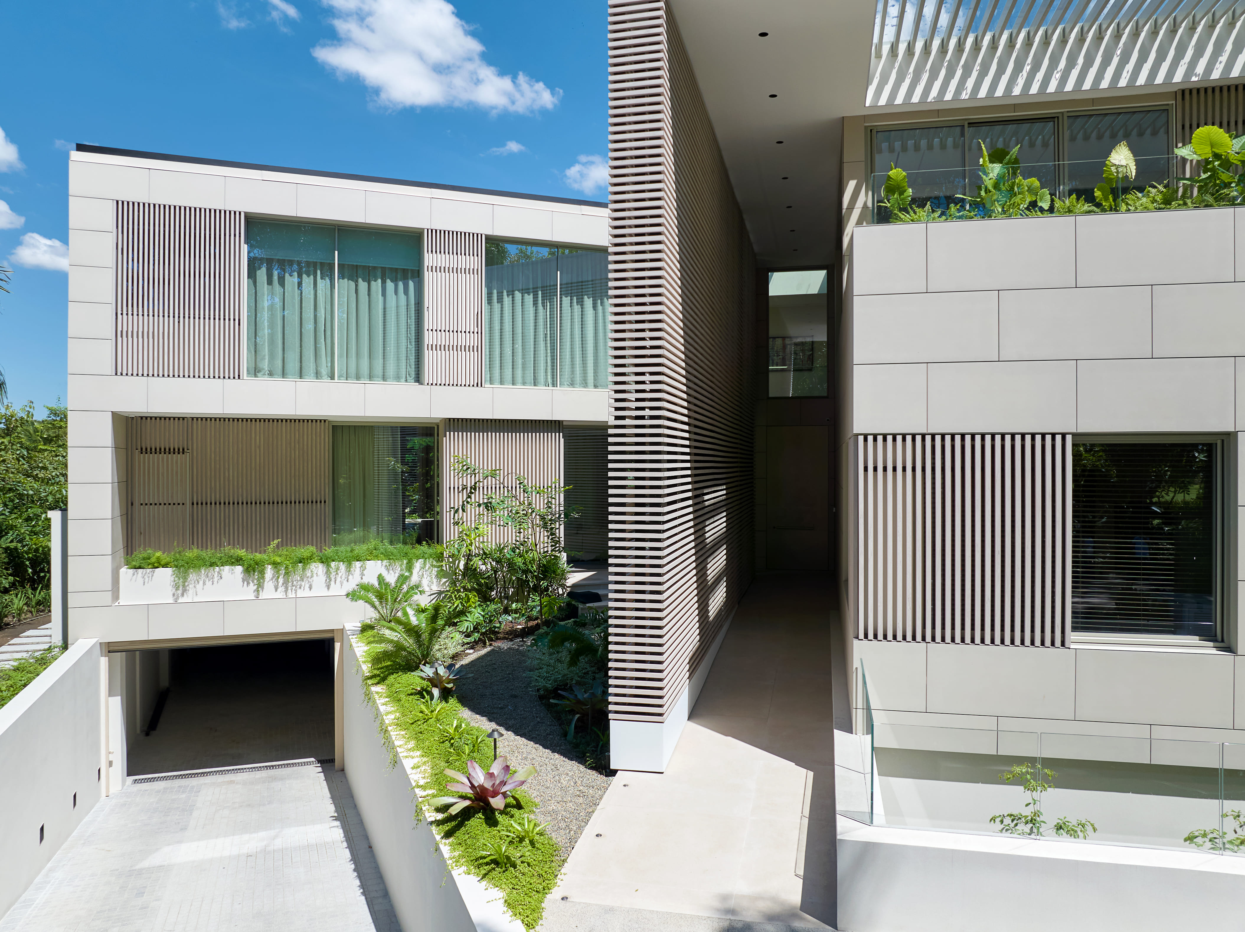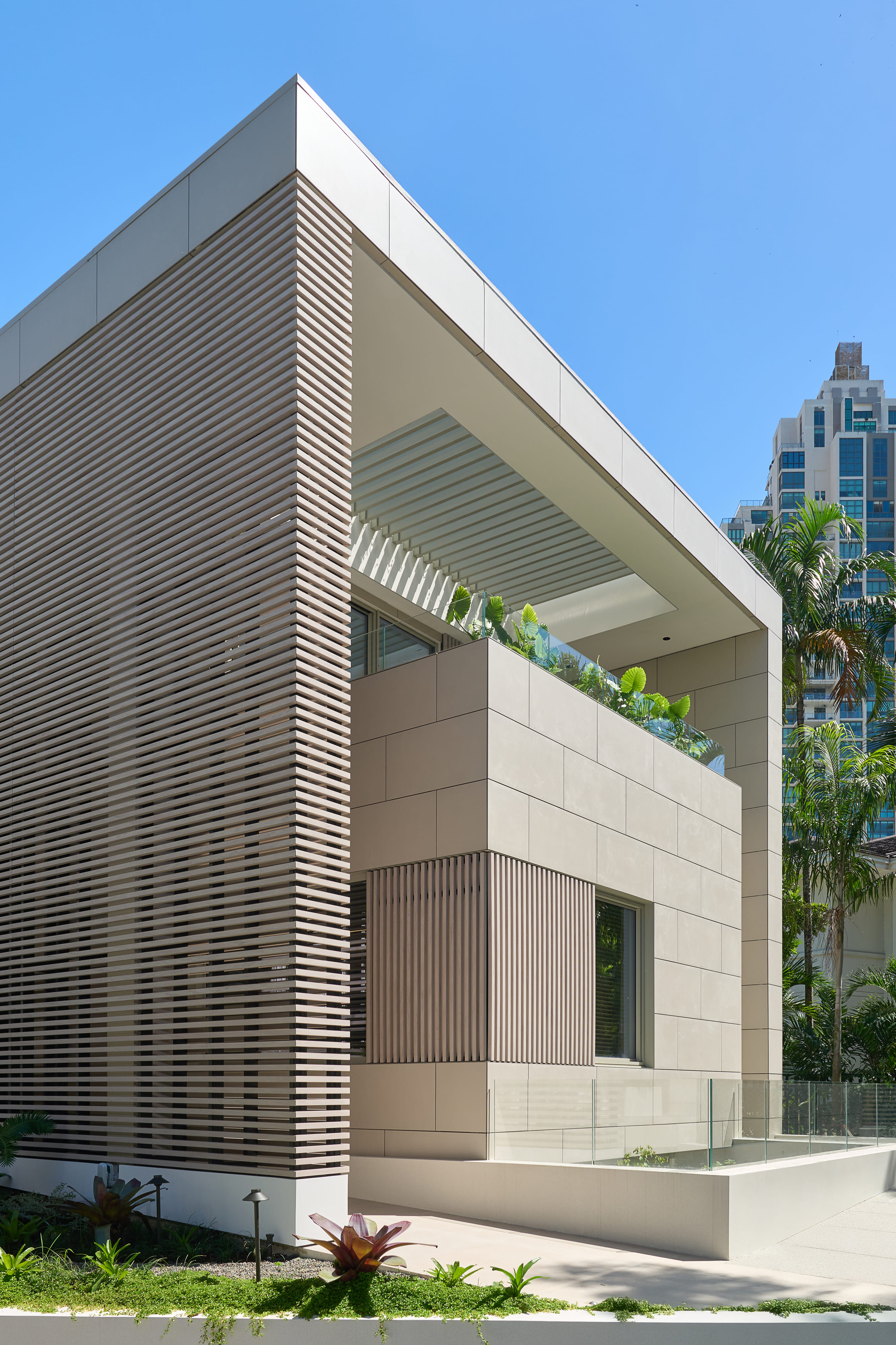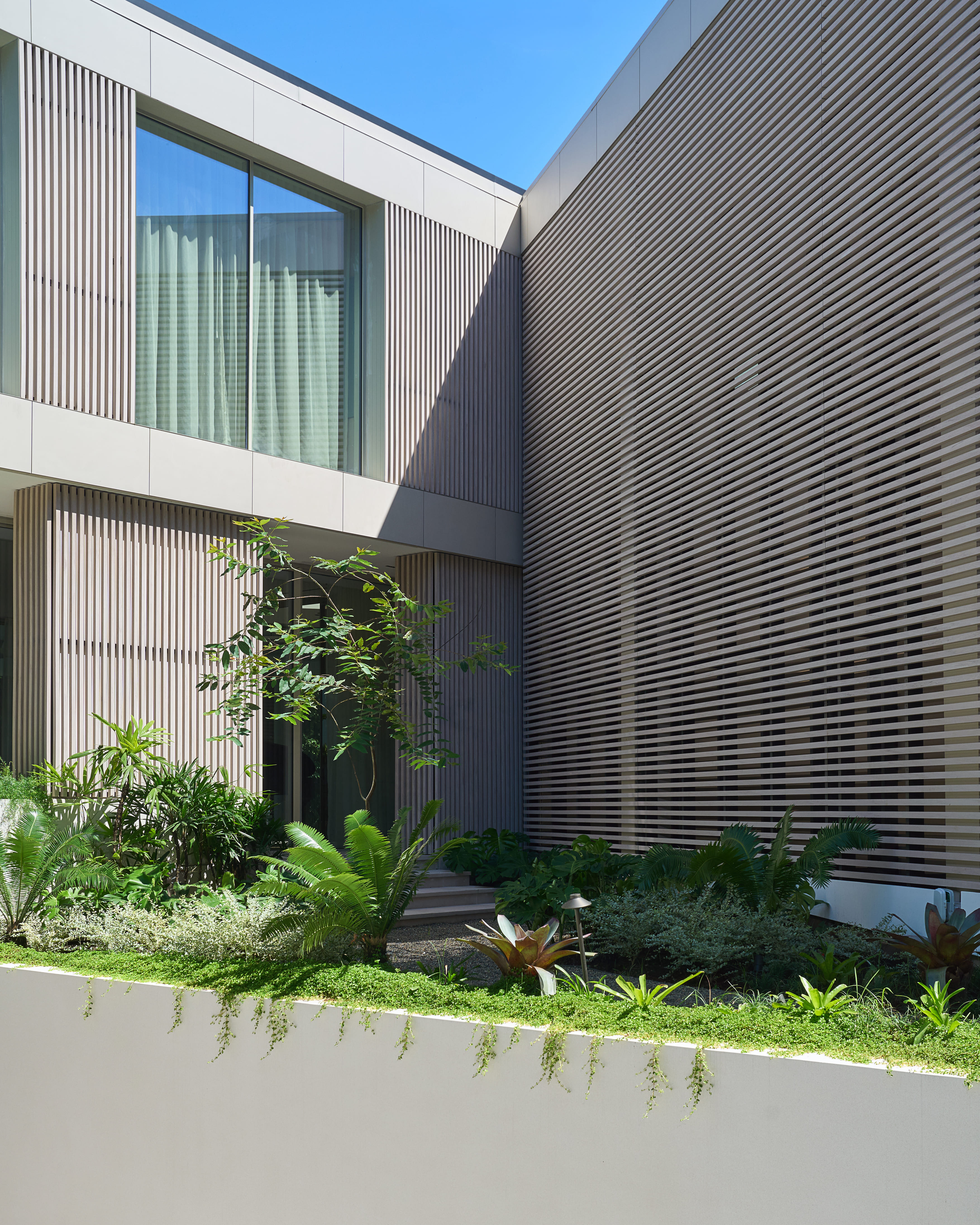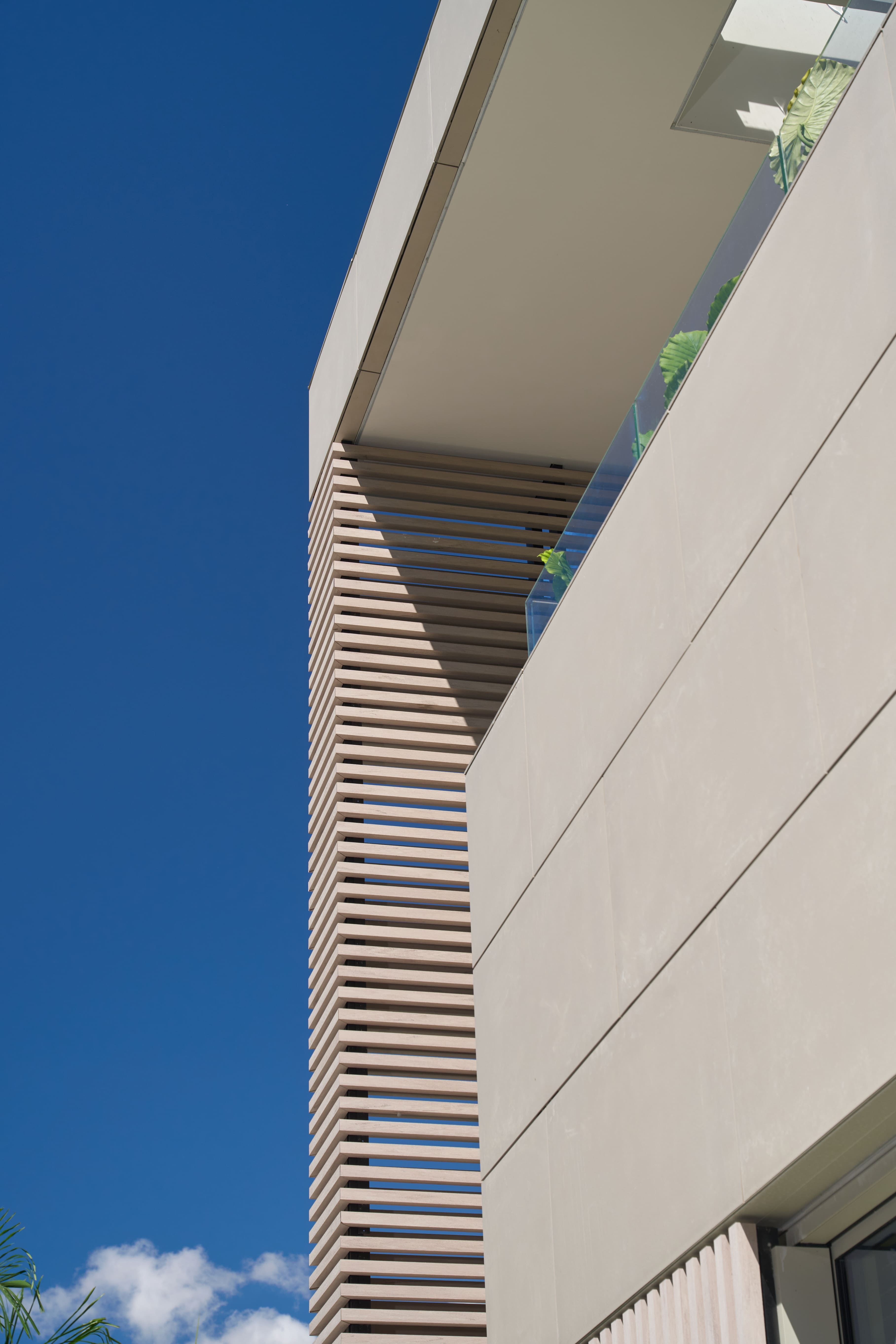 Questo progetto è costituito da persiane realizzate con griglie Annapurna 40x40 mm inserite in telai fissi e pareti con disposizione delle lamelle orizzontale o verticale.